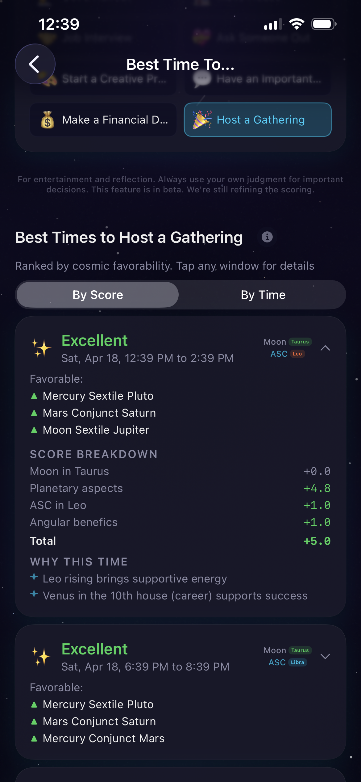 - Best-timing tool: find the ideal window for launches, hard conversations, or signings